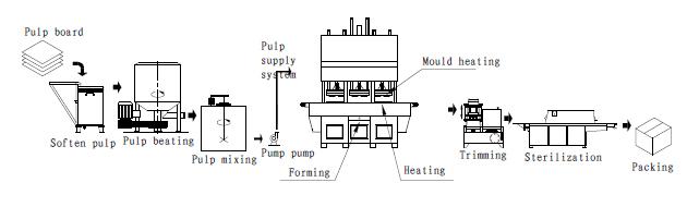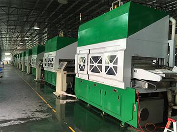 3- بعد التشكيل، تفرغ مواد المائدة ثم ترسل الى قالب التصليد لتسخين، ثم التجفيف، ثم ترسل الماكينة المنتجات الى العملية النهائية